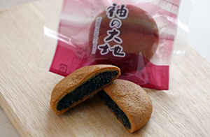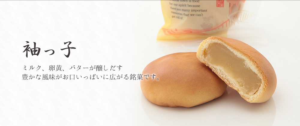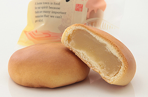 袖ヶ浦の肥沃な土地をイメージしたお菓子で、中は黒ゴマ餡で、生地に醤油を配合しました。